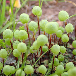 Liverworts have a combined structure called a thallus that branches creating flattened lobes. The stalks that hold the spore capsule are much shorter and stouter than those of the mosses.